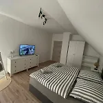 Tesis bahçe manzaralıdır. Branderodaer Ferienwohnung dairesinde 1 yatak odası vardır. Branderodaer Ferienwohnung dairesi ayrı tuvalet, duş ile donatılmış 1 banyo odası sağlamaktadır.